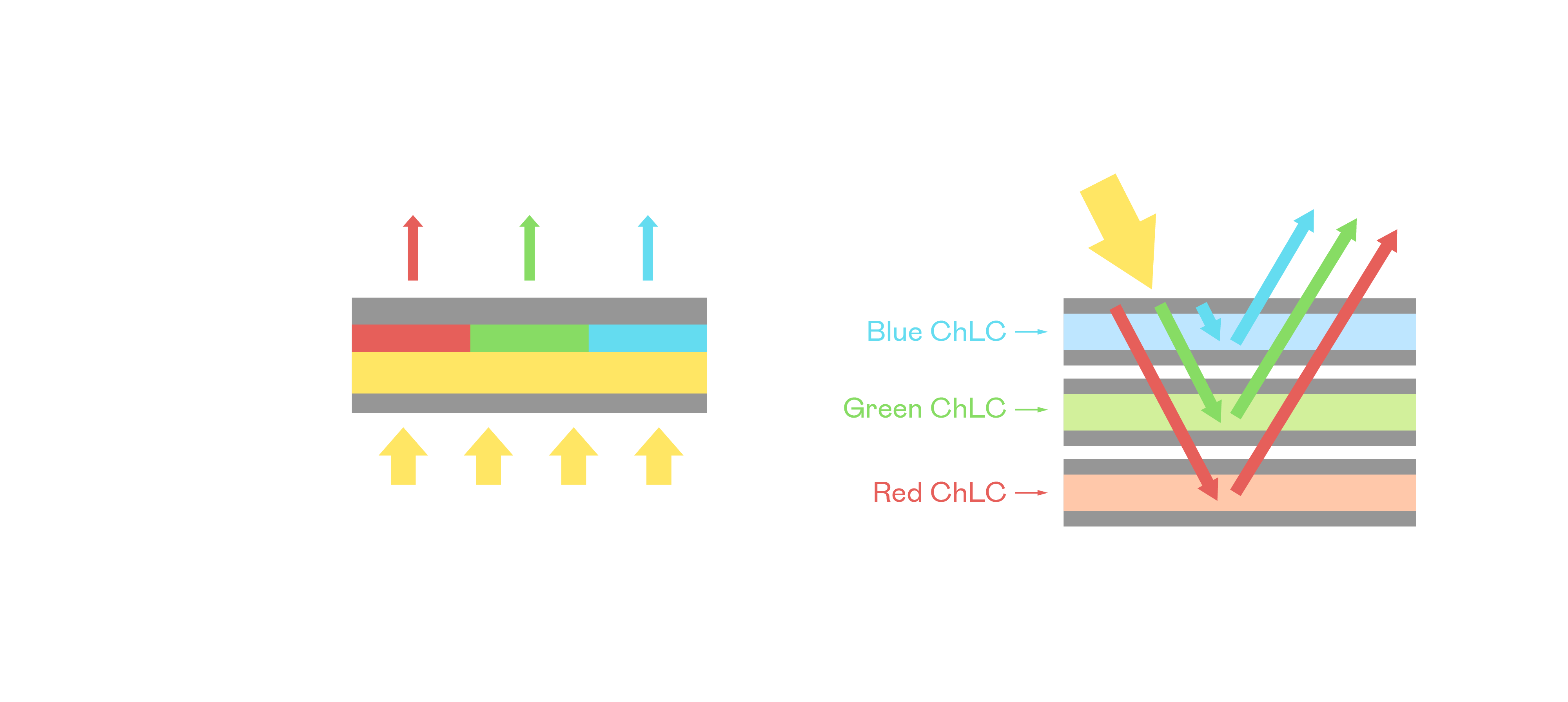 JJB竞技宝胆固醇液晶显示器是由红、绿、蓝三层胆固醇液晶面板堆叠而成,并采用无彩色滤光片设计,减少环境光在反射过程中的损耗。
